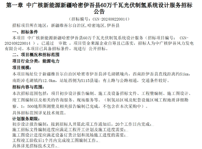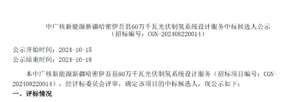 万千瓦光伏制氢系统设计服务中标候选人公示: